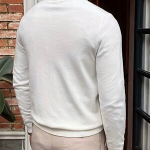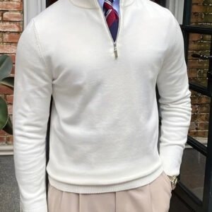A timeless staple designed for effortless elegance. Crafted from soft cotton, this half-zip sweater blends comfort with refined sophistication. The sleek zip-up collar allows for versatile styling — wear it open for a relaxed look or zipped with a shirt and tie for a polished ensemble.