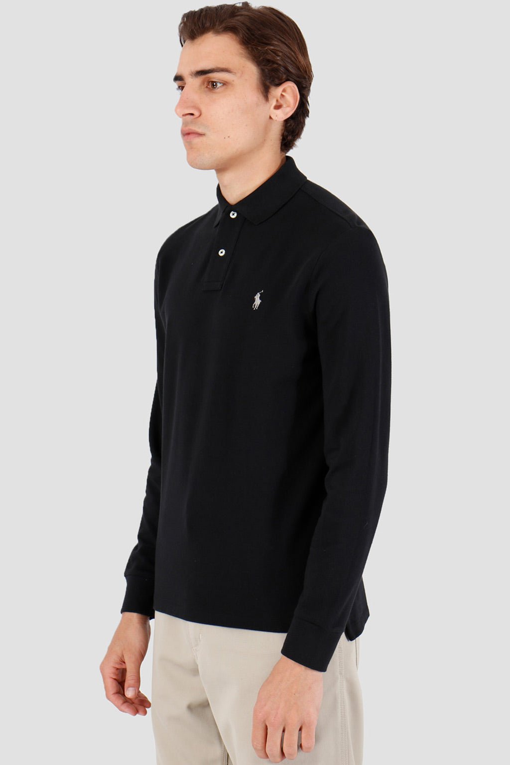 This black long-sleeved polo shirt is a must-have for the modern man, combining elegance and comfort. Made from high-quality cotton, it offers exceptional softness and breathability, ideal for all seasons.