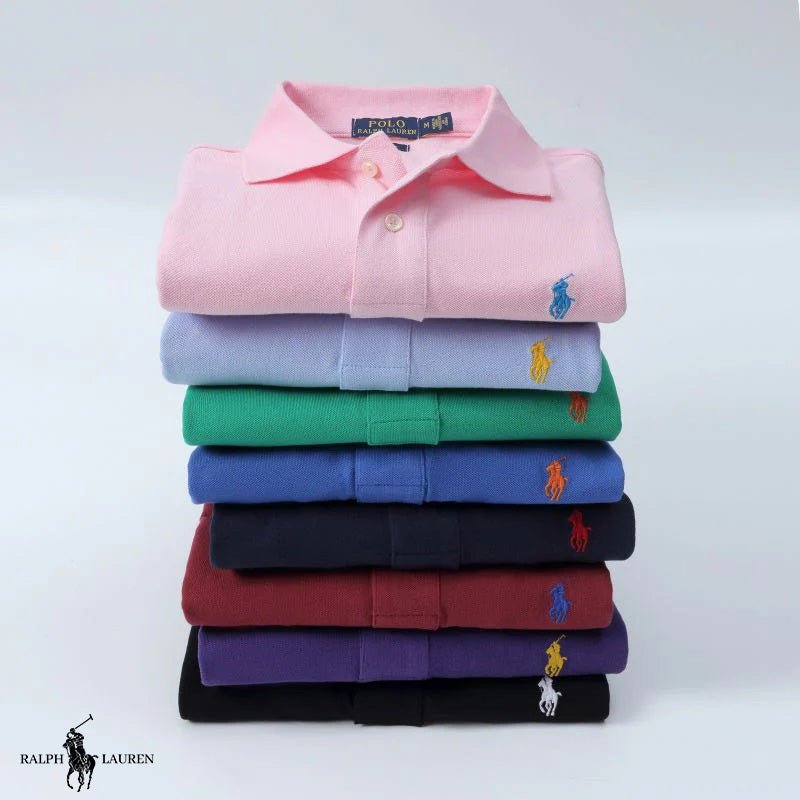 - Collar: Classic polo shirt with a two-button closure for a refined touch.