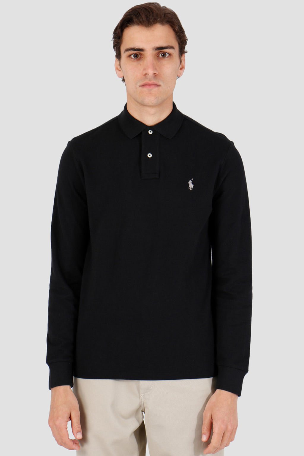 This black long-sleeved polo shirt is a must-have for the modern man, combining elegance and comfort. Made from high-quality cotton, it offers exceptional softness and breathability, ideal for all seasons.