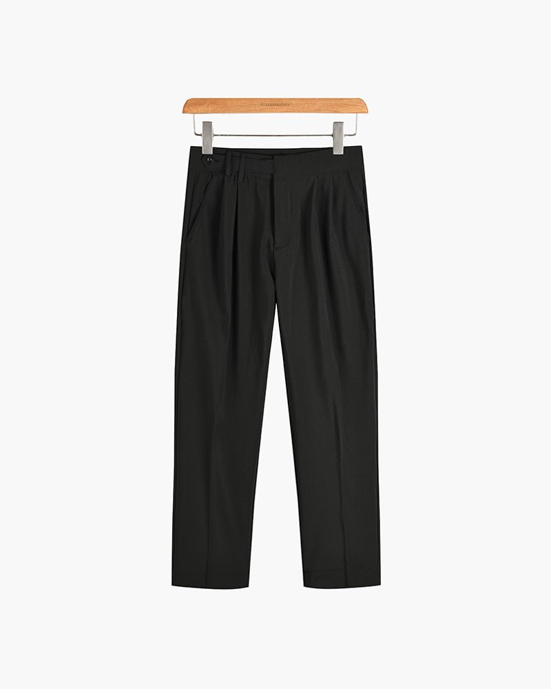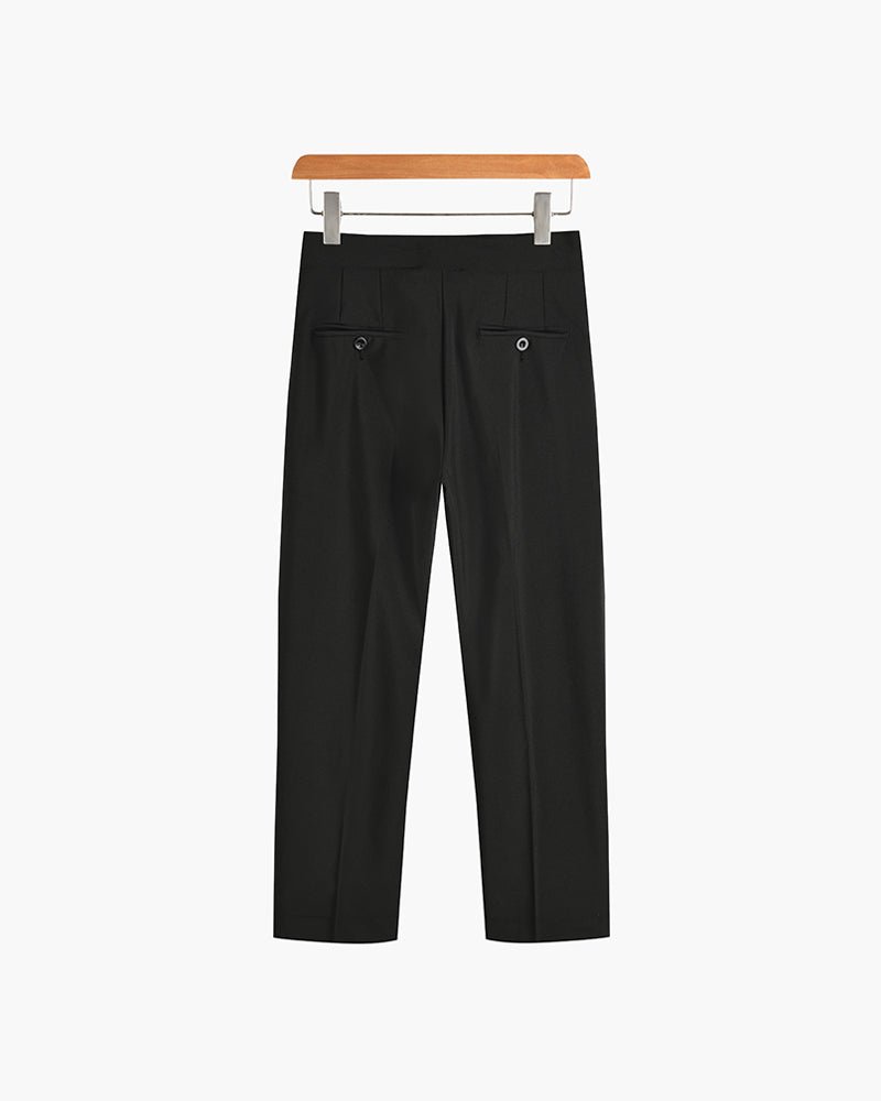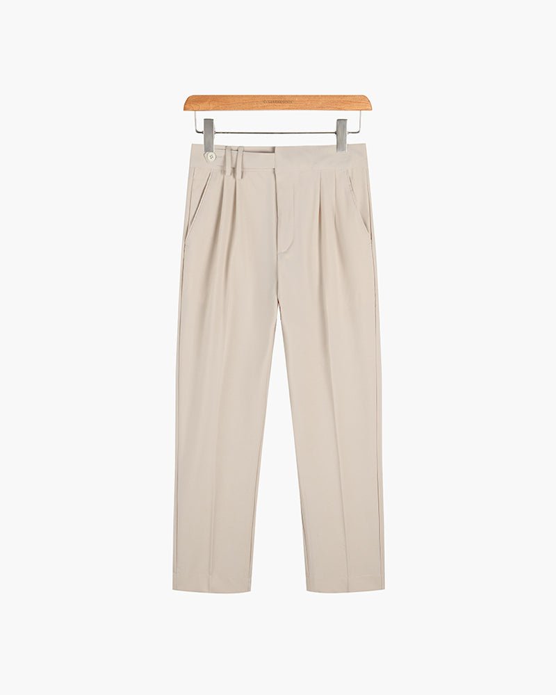 Classic tailored trousers featuring an adjustable buckle for a perfect fit. Crafted in timeless old-money style, these trousers combine refined tailoring with subtle, sophisticated details.