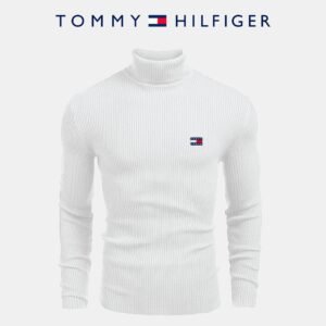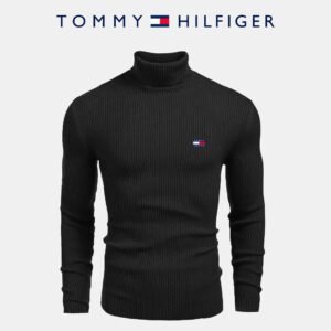 Enhance your wardrobe with the TH ribbed turtleneck sweater, designed to combine style and comfort. This versatile sweater, with its slim fit, ribbed texture, and iconic TH logo embroidered on the chest, is perfect for layering or wearing alone, adding a touch of elegance to any outfit.