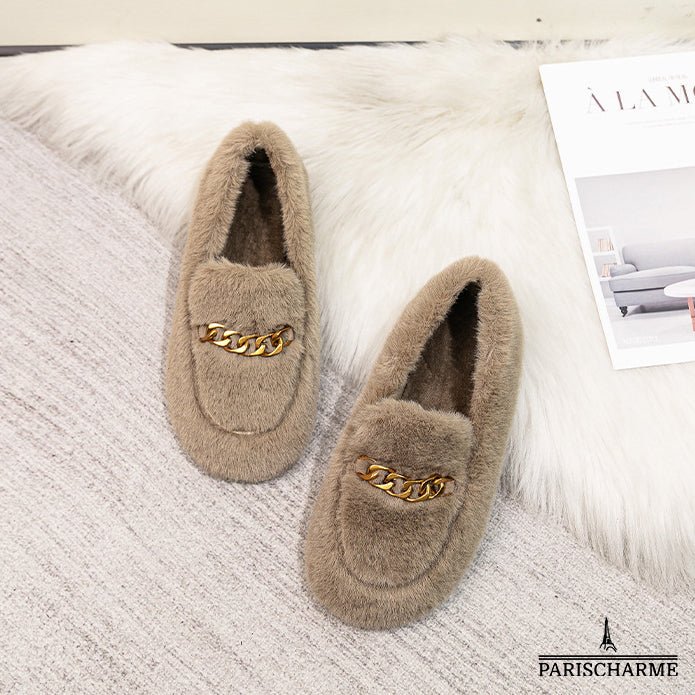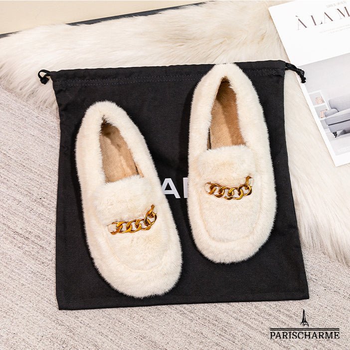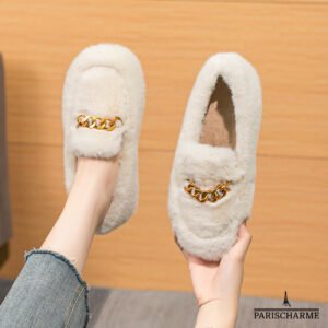 Tired of trading warmth for style during the winter? Don’t let the winter cold limit your style. Act now and step into the warmth and elegance of the Sofia – Josy slippers. Sofia slippers will keep your feet warm even on the coldest days, indoors and outdoors! The metallic chain trim adds a unique touch that’s sure to turn heads.